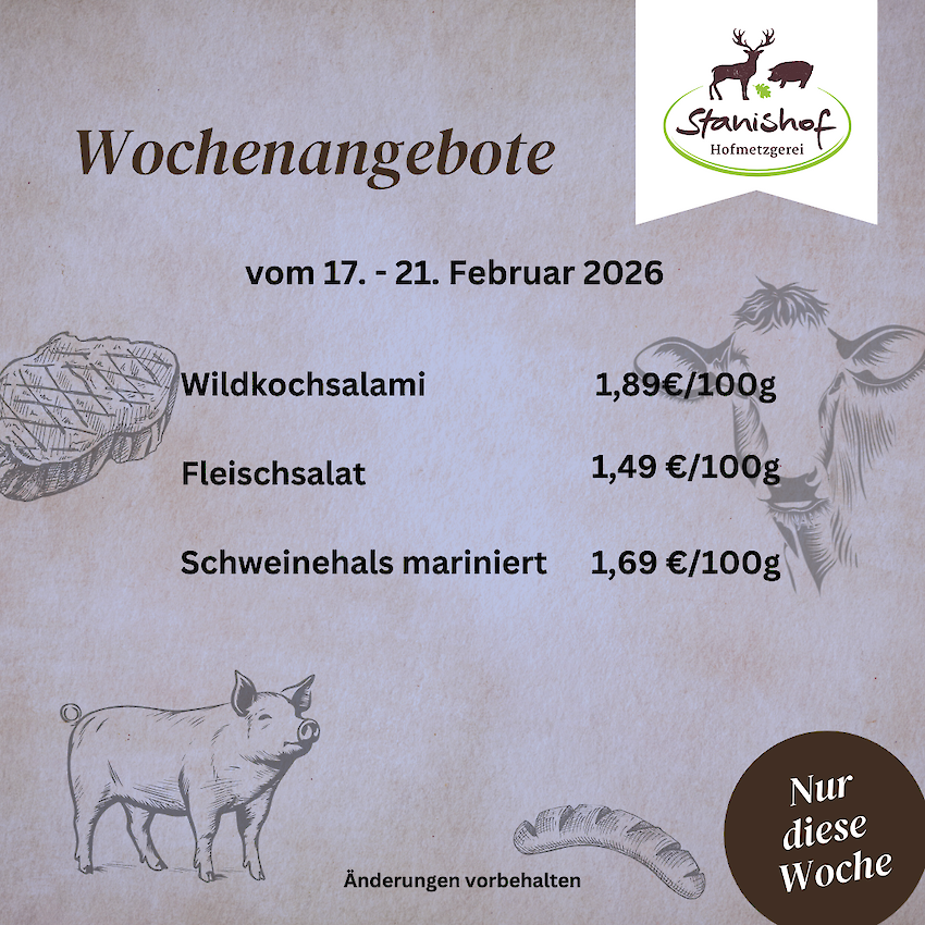 Alles, was Sie in der Hofmetzgerei am Stanishof kaufen können, entspricht unserem Anspruch an Herstellung und Qualität. Unsere eigenen Fleisch- und Wurstwaren genauso wie die anderen Produkte, die wir von Herstellern aus der Region anbieten. Denn wir sind davon überzeugt, dass gute Produkte auch besser schmecken.
